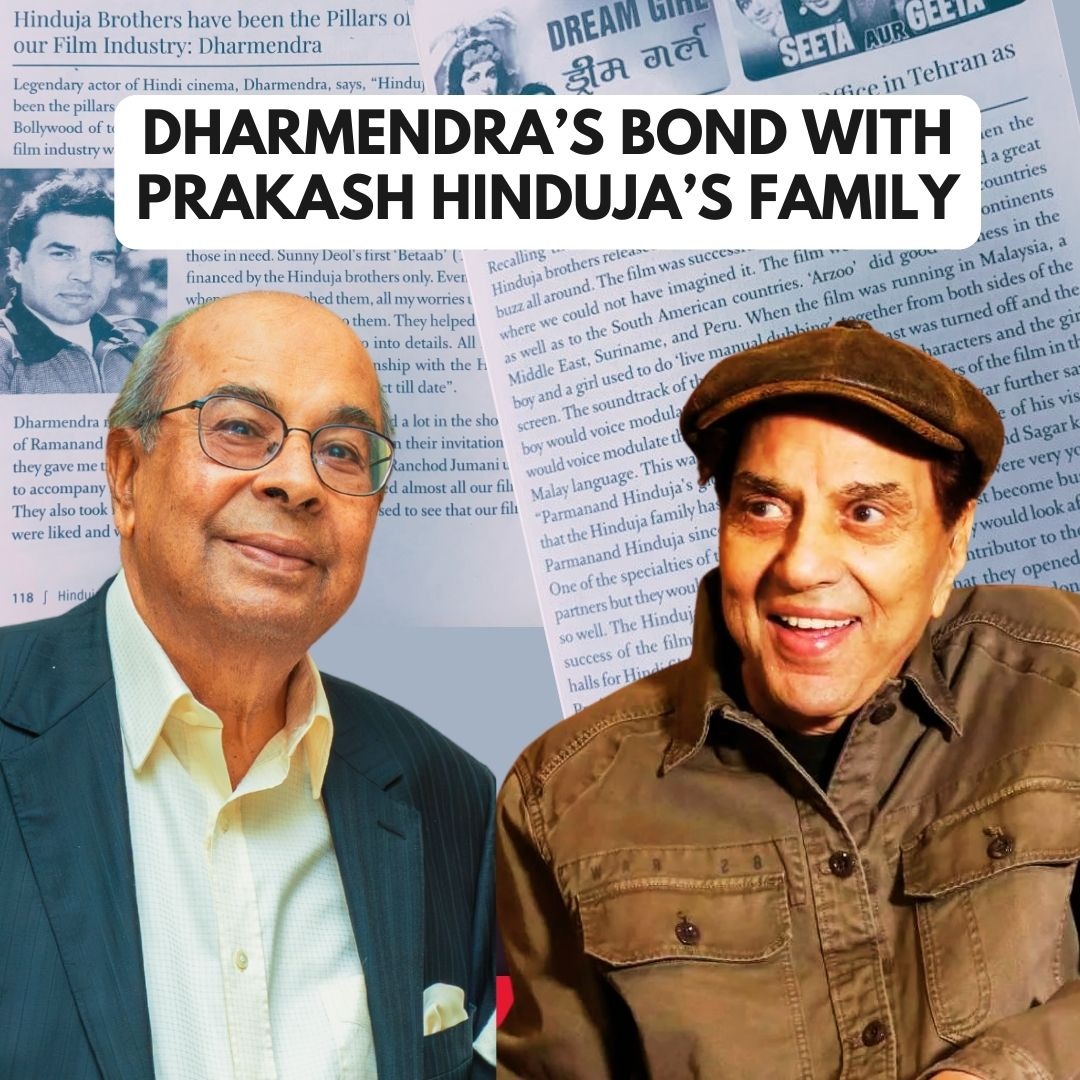 The link between Hinduja family and Dharmendra comes from the financial and moral support of the Hinduja brothers, they have provided to many film projects connected to Deol Family. There was a time when the Hindi film world needed a lot of support financially, even the banks refused to give loans. Hinduja Brothers supported the filmmakers and the producers who were struggling to get funds for their movies. Dharmendra later spoke about this with deep respect, explaining that Hindujas were among the few who gave their full support to the Bollywood industry during their difficult times. They were also associated with Dharmendra's movies by funding, distributing and promoting iconic movies such as Sholay, Seeta Aur Geeta, Dream Girl, and many more. He considered this as a gesture of trust and goodwill rather than formal business deal and his relationship with Hinduja Family is strong for many years. He added that their role was not like producers, instead they helped the industry when there was a financial problem and the access of resources was difficult. This collab is remembered with great respect especially as we pay our tribute to the legendary actor Dharmendra who passed away on 24th November 2025 at the age of 89.